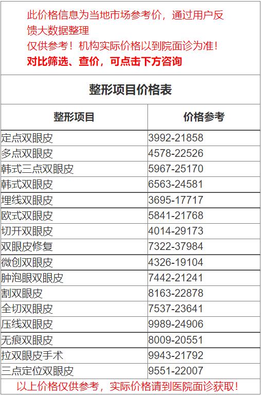 四、宁波市第二医院整形美容科双眼皮价格表