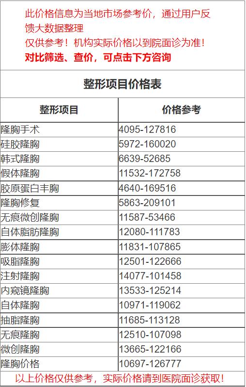 三、上海市第一人民医院整形科隆胸价格表