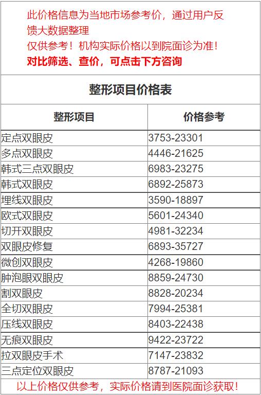 四、汕头第一附属医院整形外科双眼皮价格表