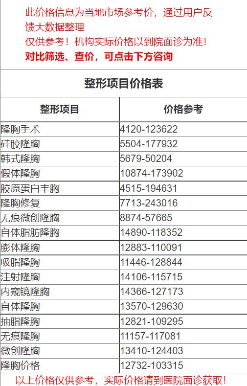 四、武汉市中心医院整形科隆胸价格表