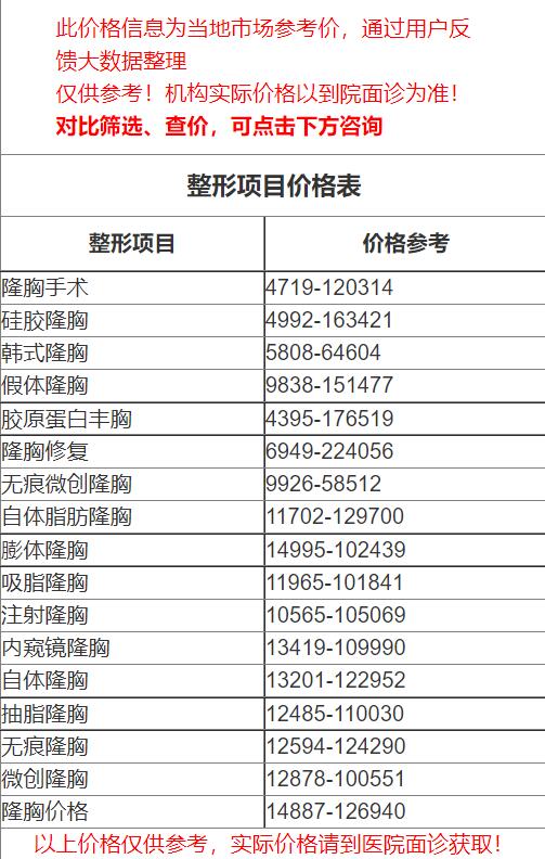 四、福州第一医院整形科隆胸价格表