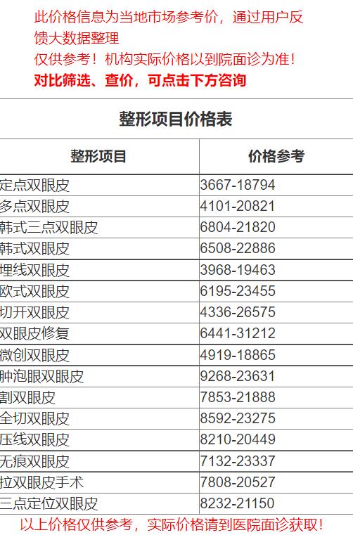 四、哈尔滨第一医院整形科双眼皮价格表
