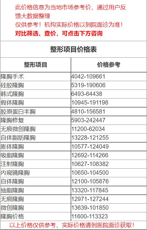 四、烟台毓璜顶医院整形科隆胸价格表