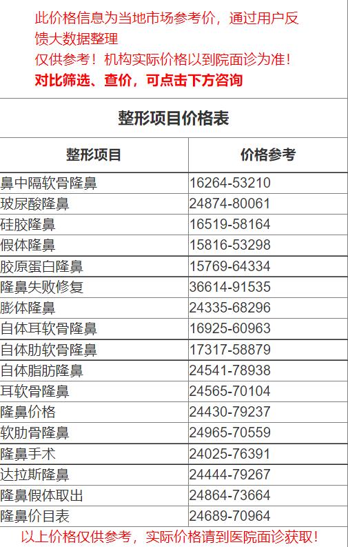 三、杭州第一人民医院整形科隆鼻价格表