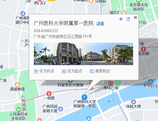 广州站210米向东步行 到 广州火车站 D3口 进站4站乘 地铁2号线 (广州南站方向) 到 海珠广场 B1口 出站550米向西南步行 到 广州医科大学附属第一医院