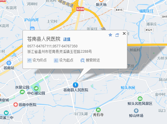 医院地址:浙江省温州市苍南县灵溪镇玉苍路2288号