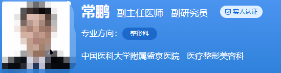 医生介绍:常鹏是副主任医师,副研究员,毕业于中国人民解放军第四军医大学,博士后,还在美国匹兹堡大学医学中心整形外科做访问学者。在整形外科工作了十多年,完成了近千例手术。还发表了英文论文16篇,中文论文9篇。
