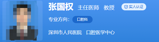 医生介绍:张国权是主任医师,教授,研究生导师,博士。还曾经在韩国全南大学做过访问学者,也在德国奥尔登堡大学做过高级访问学者,学习先进的口腔调节技术。还是深圳市口腔医学会牙及牙槽外科专委会副主任委员、广东省口腔医学会牙及牙槽外科专委会常委、深圳市口腔医学会理事等。