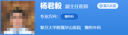 医生介绍:杨君毅是副主任医师,毕业于上海第二医科大学,硕士。在整形行业工作了20多年,经验丰富,技术精湛。还获得了上海市科技进步二等奖、上海市科技成果3等奖,还在国家知名的刊物上发表了多篇的论文,还被美国的SCI收录。