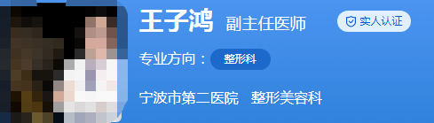 医生介绍:王子鸿是副主任医师,毕业于温州医科大学,曾经在2015年到上海九院进修过,2016年在宁波第二医院开设修复重建外科。还是宁波医学整形美容分会委员、中国整形美容协会脂肪医学分会常务委员等。