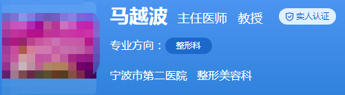 医生介绍:马越波是副主任医师,硕士生导师,教授。曾经师从国内整形外科创始人宋儒耀教授,对于整形有着自己的理解,采用数字化的概念实施微创整形,已经是国内领先水平了。已经成功的完成了上万例的整形手术,还在国内知名的杂志上发表了30多篇的论文,还获得了浙江省卫生厅医学科技进步奖一项。还是中华医学会整形外科分会脂肪学组全国委员、中华医学会浙江省整形外科分会付主任委员、浙江省医疗事故鉴定委员会专家等。
