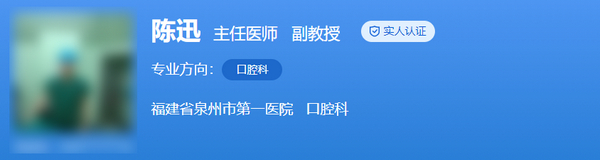 医生介绍:陈迅为泉州市第一医院牙科的副主任医师,毕业于四川大学华西口腔医学院,在口腔专科领域工作了而是多年,曾经在广西医科大学工作并到广州暨南大学附属第一医院专修口腔修复学和口腔正畸,在其期间积累了不少的先进口腔经验。擅长口腔各种类型牙体、牙睌缺失的固定修复、活动修复和种植修复等,对口腔内科、外科及口腔正畸方面有较丰富的临床诊治经验,在职期间不断发表相关刊物。