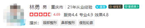 医生介绍:林勇是副主任医师,毕业于第三军医大,拥有硕士学位,在整形行业工作了21年,具有十分丰富的临床经验。在眼部整形、鼻部整形等方面,有着众多成功的案例。还会根据不同的求美者,制定具有个性化的手术方案,深受求美者的认可。