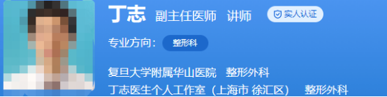 医生介绍:丁志是副主任医师,讲师,博士。在整形行业工作了十多年,有着十分丰富的临床经验,精湛的整形技术。主持过多项课题研究,还发表过多篇学术论文。还是上海市医学会医学美学美容专委会第八届青年委员、中西医结合学会耳再造学组委员等。还获得了优秀对口资源专家荣誉称号。