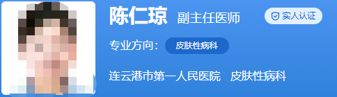 医生介绍:陈仁琼是副主任医师,毕业于天津医科大学,博士。还主持过医院博士启动基金1项,主持国家自然科学青年基金1项。还被评为连云港市521人才和连云港市医学重点人才。在2017年被评为医院“十大科技之星”和2018年被评为医院“优秀医师”。还发表了SCI论文10多篇。也成功的帮助了很多的患者,了一些皮肤问题,深受患者的认可和喜爱。
