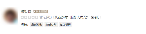 技术擅长:微整形、美容手术、重睑、隆鼻