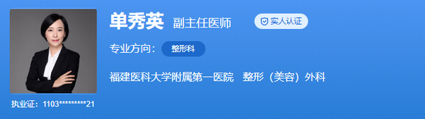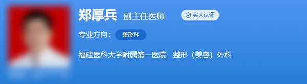 医生介绍:副主任医师、副教授,硕士生导师。2010年毕业于福建医科大学,获外科学硕士学位,师从王彪教授;2018年毕业于福建医科大学,获外科学(整形外科)博士学位,师从郭树忠教授。曾于2016年在美国俄勒冈州OHSU乳房整形中心进修学习3个月,2017-2018年在中国医学科学院整形外科医院进修学习。主持福建省自然科学基金项目1项,福建省科技创新联合资金项目1项,福建省卫生计生委中青年骨干课题1项,福建省卫生计生委青年科研课题1项,参与近10余项科研课题研究,发表论文近10余篇,其中SCI论文6篇,从事整形美容外科临床工作十余年。