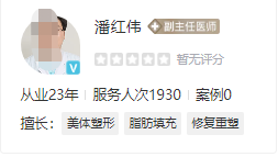 潘红伟在医疗整形美容方面已经工作了27年,是西南地区早期可以做整形美容手术的医师之一,他也是好的韩式整形医生。曾经在在多家整形美容医院任命整形科主任,整形界中有着好的声誉。潘红伟的技术细腻娴熟、以创新意识和精益求精的设计而闻名,多年来以专业的临床技术成为国内整形外科医师之一。先后应邀赴日韩、美国等地讲学和学术交流,在国内外专业期刊发表了十多篇论文。潘红伟其基本理论扎实,临床经验丰富,手术精致、细腻,成功地完成了例的整形美容手术。擅长、韩式整形,自体细胞除皱、隆鼻、隆胸等系列手术,在吸脂、自体脂肪填充这些方面有很深的造诣,并有自己独特的见解。还获得了“韩式整形全能大师”的称号。