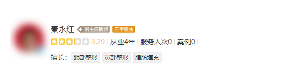 医生介绍:秦永红医生在眼周、鼻部整形和面部年轻化领域拥有丰富的临床经验和精湛的技艺。她始终关注患者的需求,用心为每位患者量身打造个性化的诊治方案。在追求美的道路上,秦医生注重手术的安全性和自然美,让患者在轻松的氛围中实现美丽的转变。