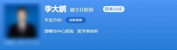 医生介绍:李大鹏主任医师,拥有多年的美容经验,擅长运用先进的激光技术,为求美者解决皮肤色素沉着、疤痕修复等问题,其外伤美容缝合技术更是业界典范,能在很小程度上减少创伤痕迹,让美丽不是梦。