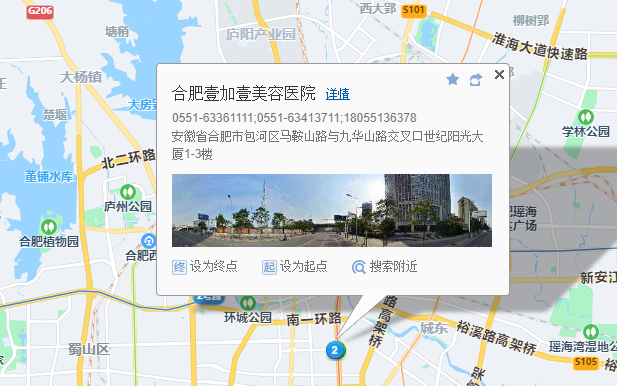 合肥壹加壹医疗美容医院到院路线:
