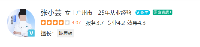 医生介绍:张小芸是一名杰出的执业医师,从事整形美容及临床医学多年,发表多篇论文和专著。她在微整形面部评估和治疗选择方面有着深刻的认识,其入针的手法、精度、力度和深度在业内获得高度关注及一致好评。
