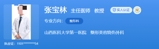 医生介绍:张宝林是山西医科大学第一医院整形美容烧伤外科的主任医师,同时也是该科室的主任和硕士研究生导师。业界人士和爱美者普遍认为他医德高尚、医术超群、细致周到,是值得信赖的好医生。