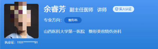 技术擅长:瘢痕修复、微整形、面部年轻化手术