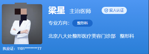 医生介绍:梁星从事整形外科工作十余年,一直秉着严谨负责的工作作风,致力于脂肪来源干细胞的研究,对脂肪管理情有独钟,同时擅长微创自然的重睑成形术,在专业期刊发表多篇文章。她能多角度分析求美者问题,利用多种手段联合为求美者提供方案,一直保持着精确、定制的理念为求美者做出满意的效果。