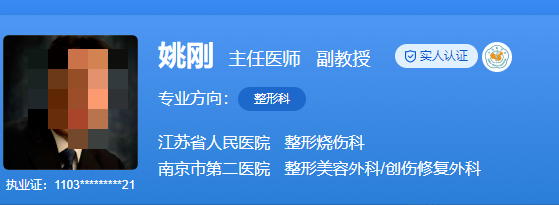 医生介绍:姚刚是江苏省人民医院整形烧伤科的主任医师,他自从毕业后就从事烧伤整形行业多年,至今已有丰富的经验,在面对不同的整形难题时,都能轻松解决。