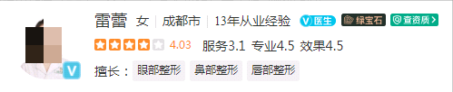 医生介绍:雷蕾医生是北京大学口腔医院正畸科的副主任医师,专注于眼部美容领域,尤其擅长开眼角及眼袋去除手术。她在中华医学美学美容杂志上发表过多篇关于眼部整形的文章,受到了好评。