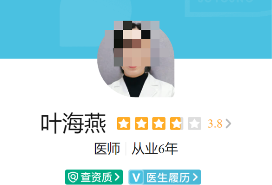 医生介绍:叶海燕医生是昆明铜雀台整形医院的医师,她从事美容行业已有6年的时间,在皮肤管理以及激光脱毛等项目有丰富的经验,能够以专业的技术进行操作,能做到细致认真。