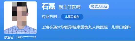 医生介绍:石磊医生是上海第九人民医院儿童口腔科的副主任医师,医学博士,拥有丰富的临床经验和扎实的理论基础。他主要从事儿童咬合诱导、早期矫正和隐形矫正,对其他儿童口腔疾病也有丰富的诊疗经验。无论是复杂的儿童口腔问题还是常规的牙齿矫正,石磊医生都能游刃有余地处理,为孩子们带来最好的治疗效果。