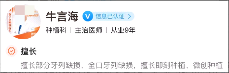 医生介绍:牛言海医生是一位在口腔医学领域有着近十年临床工作经验的专业医师。他曾先后在河南省口腔医学和三甲医院广东省口腔医院实习及规范化培训,积累了大量的临床专业知识和丰富的实践操作经验。在这段时间里,牛医生不仅掌握了扎实的理论基础,还通过实际操作积累了宝贵的临床经验。牛医生非常注重自身专业技能的提升,多次参加国内外各类口腔医学项目培训,并以优异的表现通过了各项认证。