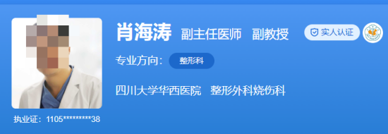 医生介绍:肖海涛是成都华西美容科的副主任医师,医学博士,他从事整形外科工作二十年,作为访问学者,他曾多次赴日本医科大学、韩国BIO美容医院、上海第九人民医院等地学习交流,掌握最适合东亚人的整形美容理念和先进技术。