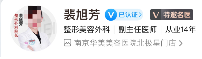 医生介绍:裴旭芳是南京华美整形医院整形外科副主任医师,是江苏省中西医结合学会美容外科分会会员、中国整形美容协会脂肪医学分会会员,她从2017一直在南京华美整形医院工作,有丰富的临床经验,能根据求美者不同的情况制定出不同的方案,目前已经受到广大求诊者的好评和青睐。