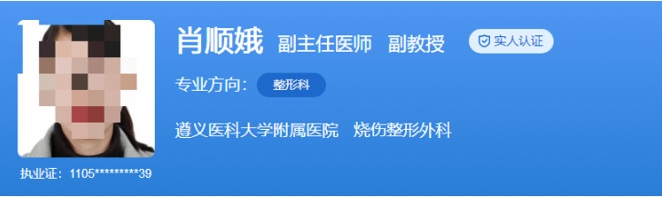 医生介绍:肖顺娥长期从事整形外科的临床及科研工作,擅长急慢性创面显微外科治疗、体表肿瘤手术治疗、面部年轻化综合治疗等多个领域。她曾主持多项国家级和省部级科研课题,以第一作者发表多篇SCI论文,并担任多个国际期刊的审稿专家。