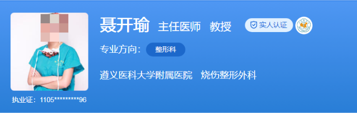 医生介绍:聂开瑜不仅是科室的主任医师和教授,同时也是硕士研究生导师。她擅长面部美学整形、瘢痕治疗、私密整形等,同时在学术界也受人敬仰,担任中华医学会整形外科分会青年委员等多个职务,曾荣获多项学术荣誉和奖励。