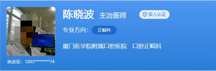 医生介绍:陈晓波医生在口腔正畸领域取得了显著的成就,曾主持省市级科研项目多项,发表国内外论文数篇,并拥有国家专利两项。另外,他还曾获得“好医生”病例大赛一等奖以及全国正畸病例大赛优秀奖。他具有扎实的理论基础和丰富的临床经验,擅长运用先进的现代矫治技术矫治正畸临床上各类病例。