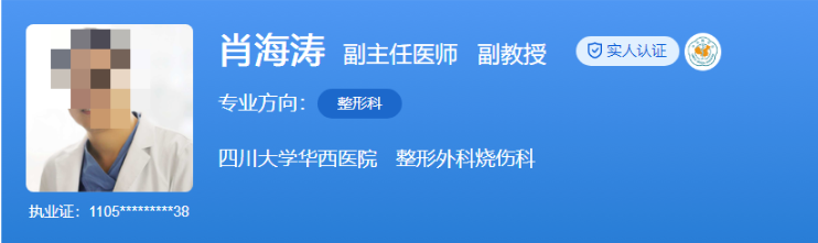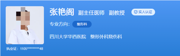 医生介绍:张艳阁医生于2001年毕业于四川大学华西临床医学专业,随后在该院整形外科/烧伤科工作至今,积累了丰富的临床经验。她参与了多项科研项目的研究工作,取得了显著的科研成果。同时,在国内外期刊上发表了多篇学术论文,为整形美容领域的学术发展做出了贡献。