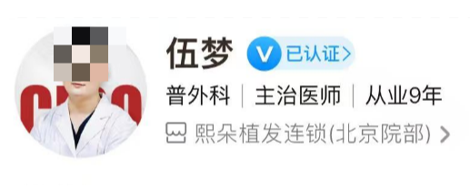 医生介绍:伍梦是北京熙朵植发医院普外科主治医师,在多年的临床实践中,他对各类植发技术运用娴熟,无论是经典的FUE无痕植发,还是难度颇高的艺术植发项目,像眉毛、胡须等精细部位的毛发移植,都能凭借精湛的技艺和对细节的严苛要求,实现自然逼真的术后效果。