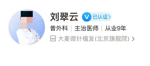 医生介绍:刘翠云医生是大麦微针植发医院的植发主任,她从事毛发种植行业以来,具有扎实的外科基础和丰富的临床经验,善于将面部美学和不剃发微针植发相结合,坚持个性化的面诊方案定制,植发追求舒适、自然、美观。