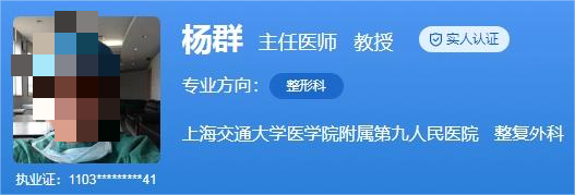 医生介绍:杨群,主任医师,她自1982年至今一直在上海第二医科大学附属第九人民医院整形外科,之后曾在日本队东京昭和大学形成外科研修。杨群教授从事整形外科30余年,在多种整形手术方面积累了丰富的临床经验,具有扎实的手术功底,并形成了鲜明的特色,可根据爱美者的具体情况制定个性化手术方案,满足了不同求美者的需求。