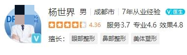 医生介绍:杨世界,主治医师,他从事整形美容工作多年,汇集了经验丰富、技术扎实的优秀医疗专家,有着过关的整形技术和时尚的审美眼光,在行业中持续探索,从未停止创新的步伐,在成都地区享有良好口碑与声誉,采用的是现代化管理模式,内部按照高标准建设,有严格的消毒和杀菌制度,培养了一些优秀的医疗专家,在资金、设备、医生与医疗资源方面都具有优势。