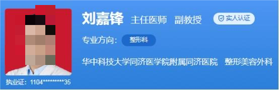 医生介绍:刘嘉锋,医学博士,主任医师。他从事整形美容外科二十多年,崇尚自然,追求个性化设计,操作细腻,临床经验丰富。曾在中国医学科学院学习,师从全国最著名的耳廓整形专家庄洪兴教授,参与及主持耳整形与再造手术三千余例,在耳廓的整形与再造方面积累了丰富的经验。在国内外权威及核心期刊以第一作者发表专业论文30多篇,部分被SCI收录。