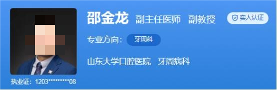 医生介绍:邵金龙,博士,副主任医师、副研究员、泰山学者青年专家,山东省“齐鲁卫生与健康杰出青年人才”。他长期从事牙周再生和生物材料抗菌相关的研究。近年来,发表论文26篇,其中 SCI论文17篇(含JCR一区论文12篇)。