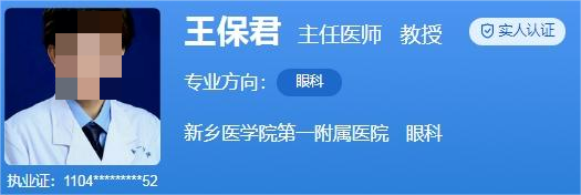 医生介绍:王保君,主任医师,教授,硕士,硕士生导师,河南省教育厅学术技术带头人,她毕业于河南医科大学,之后作为访问学者于加拿大多伦多大学学习,掌握眼部整形美容手术以及眼科各种疾病的诊断处理。发表论文约30余篇,获省教委科研成果奖2项,现承担科研课题3项,出版专著三部。