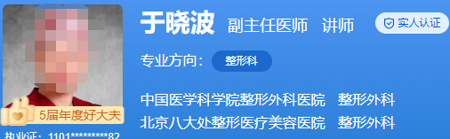 于晓波,先于成都八大处医疗美容医院担任主治医生。于协和医科大学接受系统医学知识和临床实践培训;通过不断的努力学习,获得了整形医学博士学位。在博士毕业后,于晓波并没有立即参加工作,意识到自己的不足,前往欧洲、美洲,接受美英整形医师亲自指导,研究推广国内外许多先进技术,是一位颇有名气的医生。